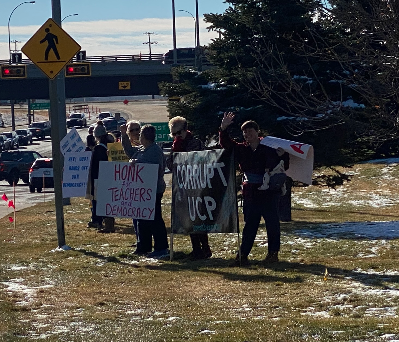 Protesters have been outside Cypress-Medicine Hat MLA Justin Wright’s office for months, the protest started outside Premier Smith’s Medicine Hat office. On Nov 15 there was 8 protesters, on Nov 22 there was over 65. (The first 2 photos are from Nov 15, the rest are from Nov 22.)