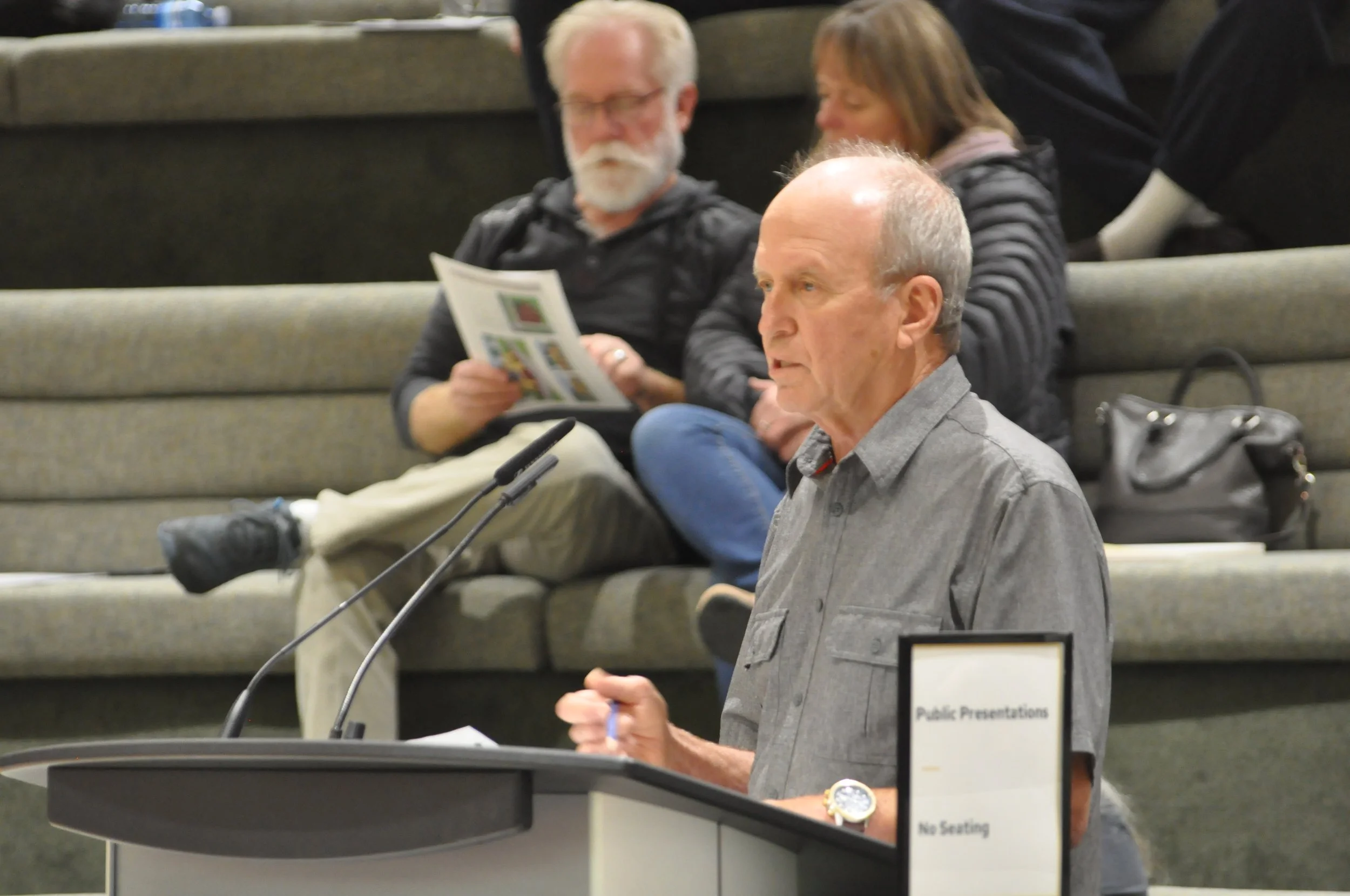 Brad Wenzel, developer with Prime Builders, speaking as the applicant for the demolition permit. (Photo Alex McCuaig)