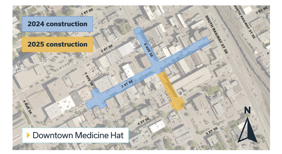 This upgrade will span the 500 and 600 blocks between 5 Avenue SE and South Railway Street SE, and the 200 block of 6 Avenue SE between 2 and 3 Streets SE.