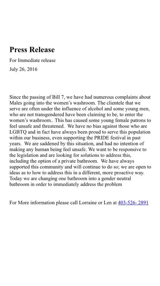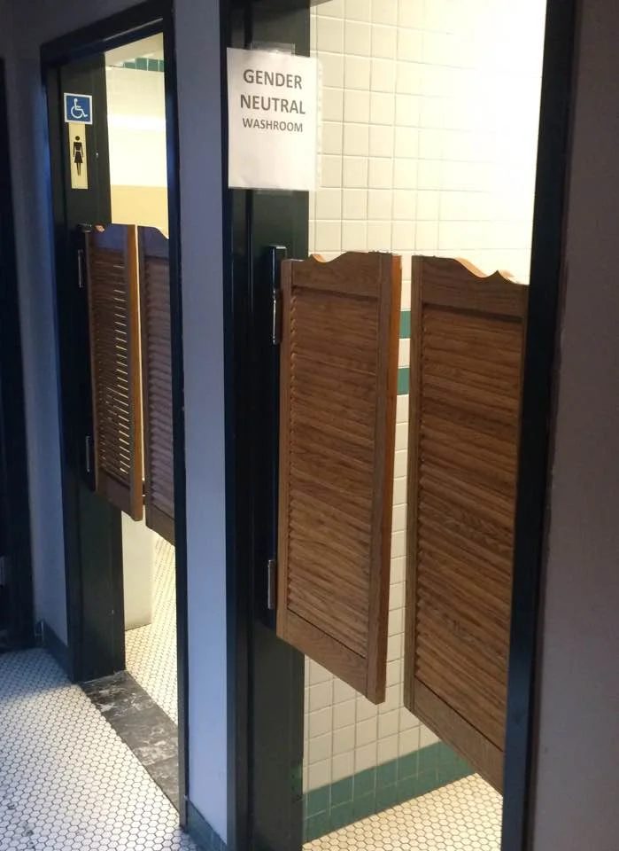 long with this photo, where the other set of bathrooms in the bar, now has a gender neutral label. So that there are 2 ladies rooms, 1 mens room, and 1 gender neutral restroom (with urinals in it)