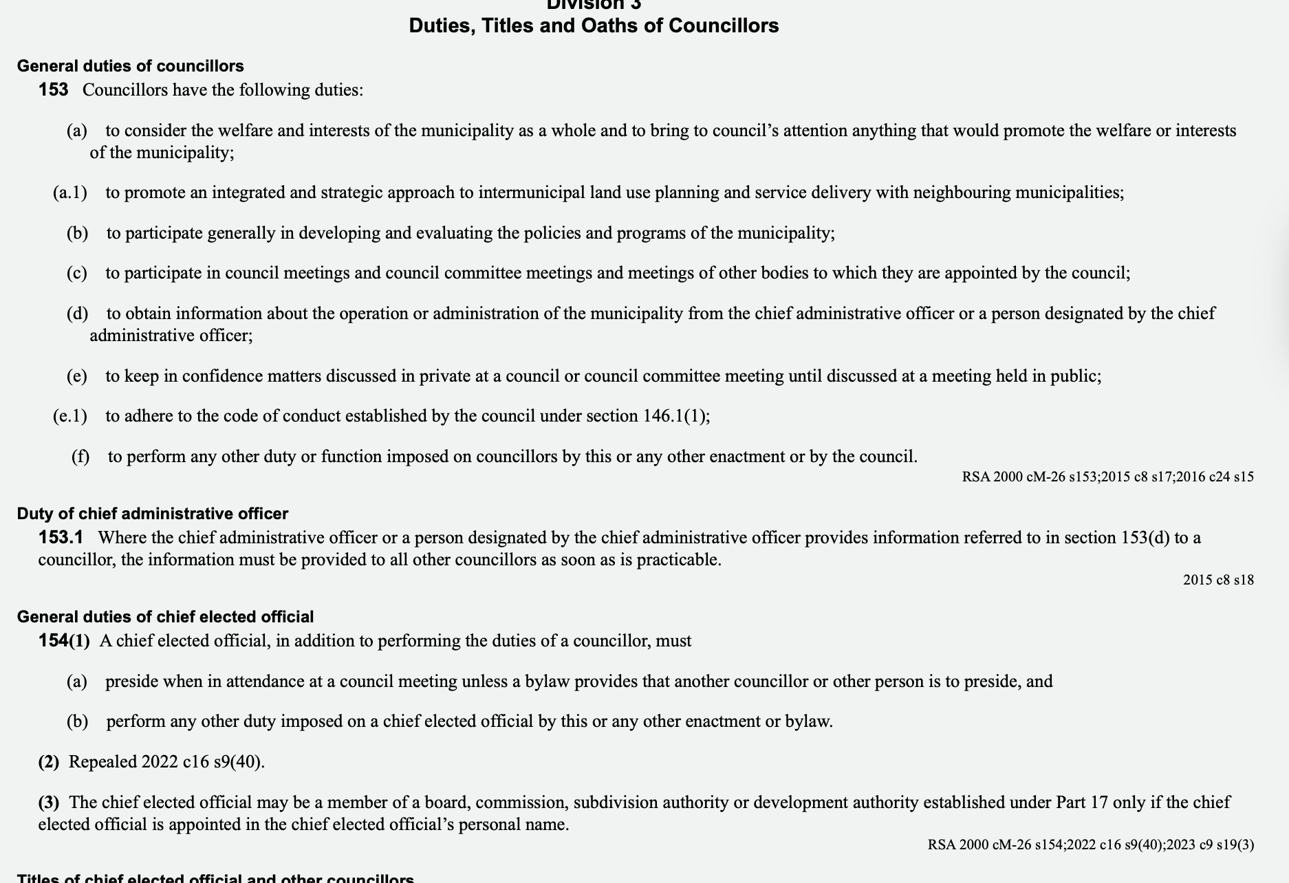 According to the Municipal Government Act (MGA),