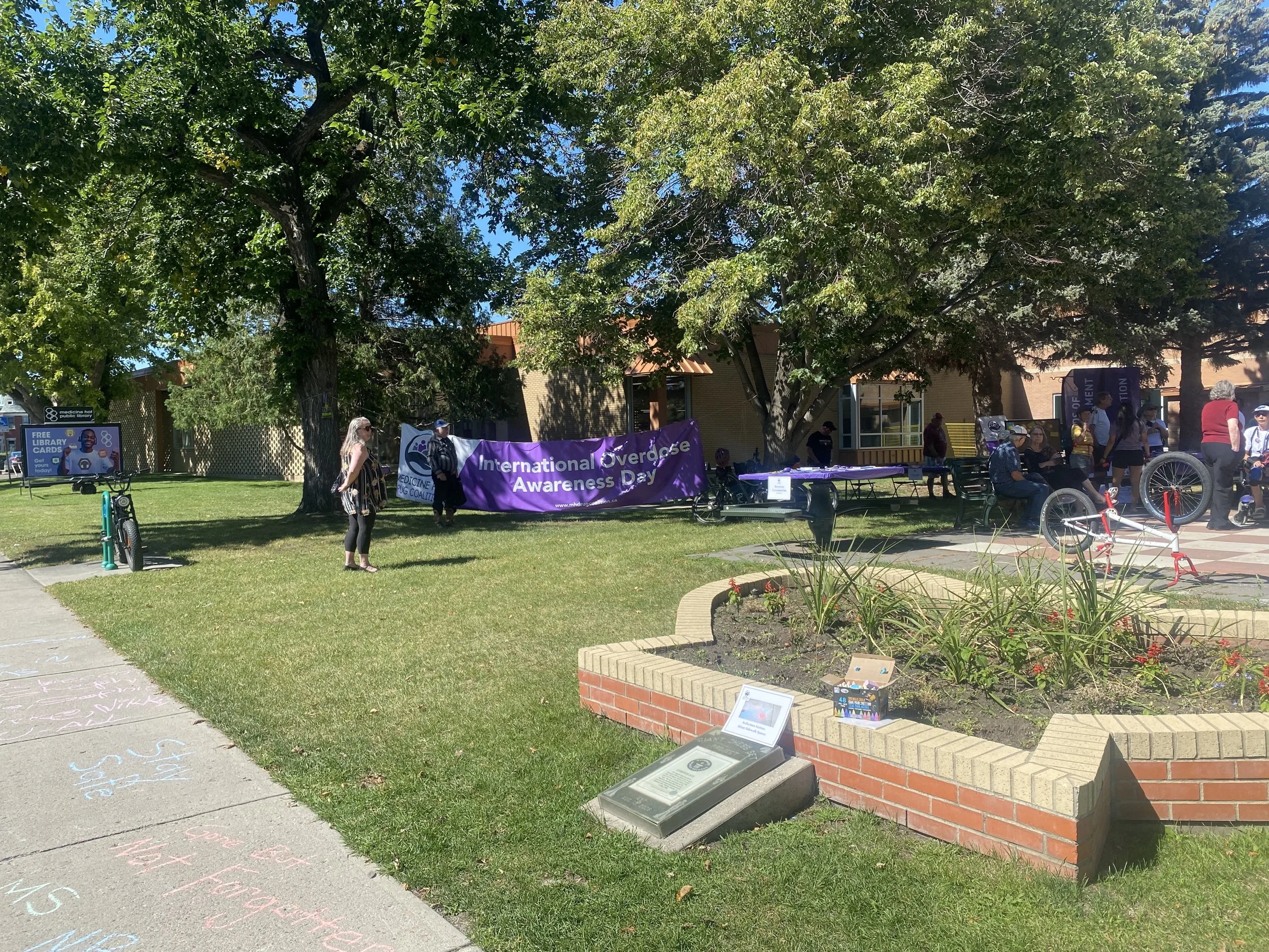 On Saturday, people gathered by the library to honour loved ones lost to drug poisonings and to advocate for various harm reduction strategies including a safer supply and supervised consumption sites.