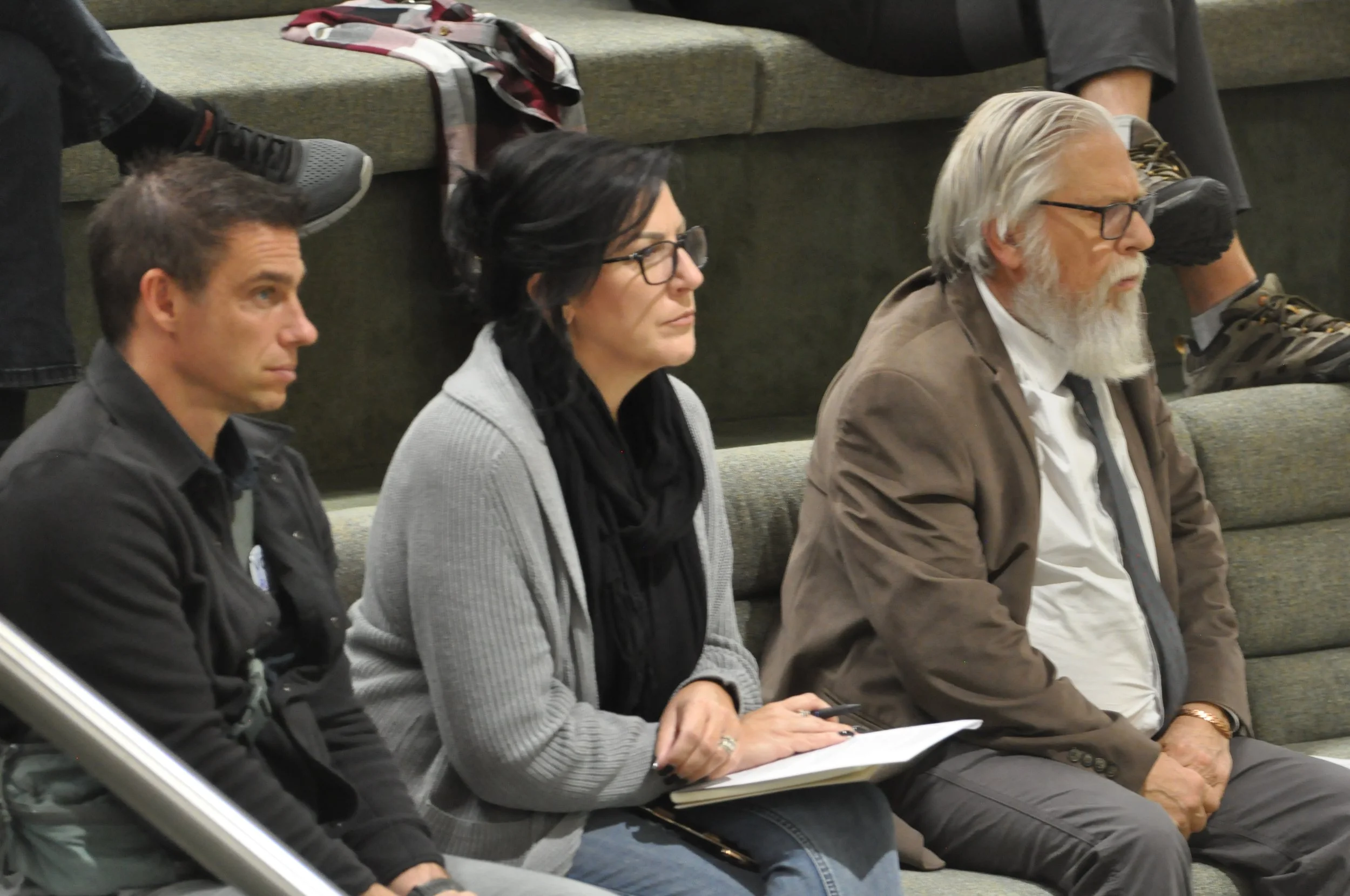Council candidates (from L to R) Micheal Reid, Pamela Kunz and Donald Knudsen take in Monday’s council meeting. (Photo Alex McCuaig)