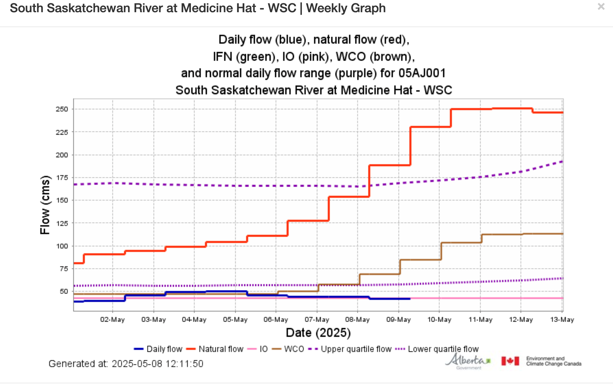 The South Saskatchewan River is still waiting to receive its spring diet of precipitation and mountain runoff as the second week of May gets underway.