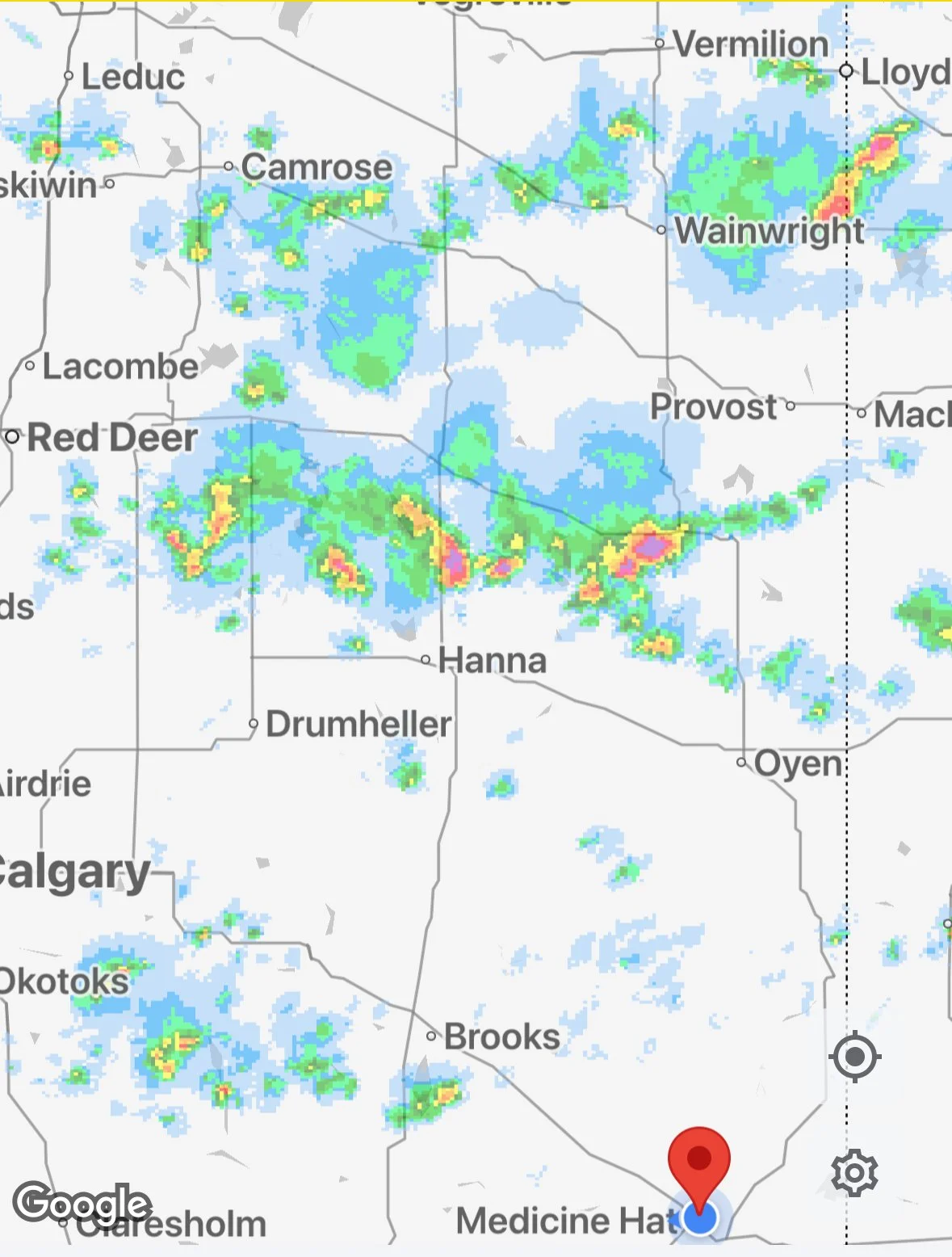 That warning is also extended to areas stretching from Castor on Hwy. 36 to areas around Wainwright.