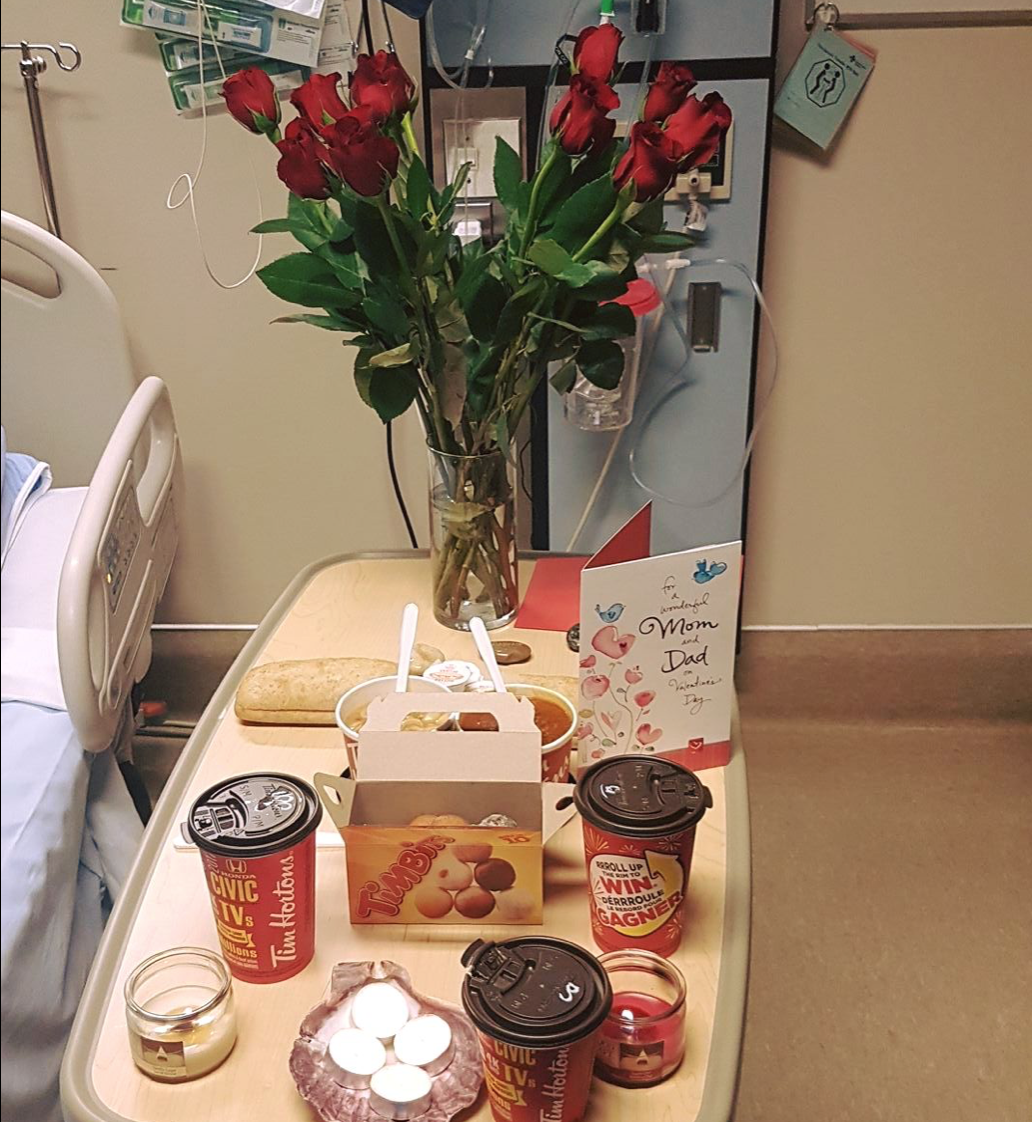 Valentine’s Day 2017 - Carl had passed his swallow test so he was allowed to eat real food for the first time in over 45 days - our kids bought the card, the flowers and the food. Not glamorous but one of the most memorable.