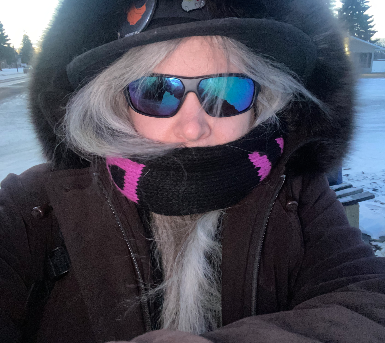 Waiting for the bus - the wind-chill was about -20C at 5:18pm, it had warmed up from -37C wind chill.