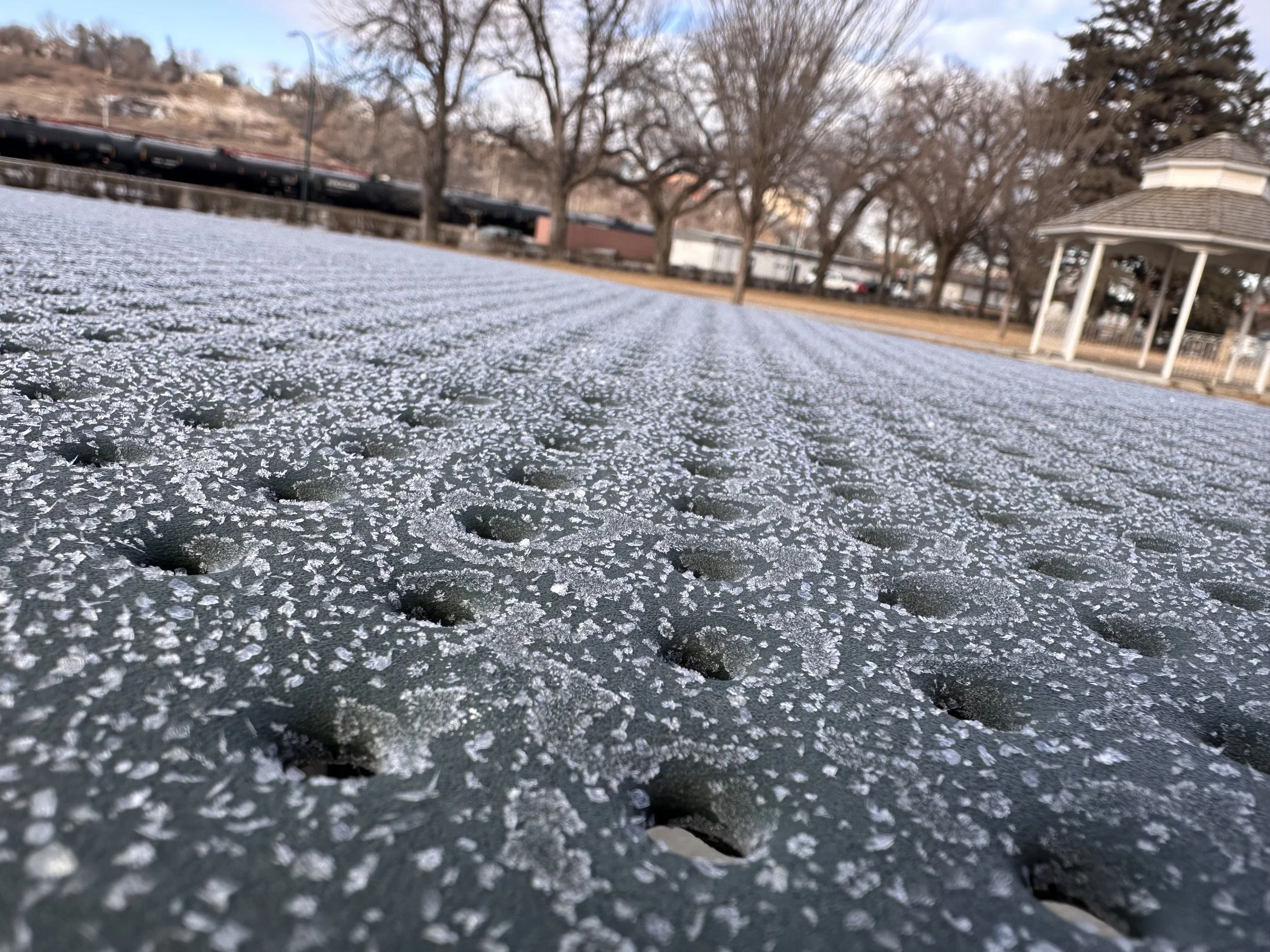 It was a balmy +7 yesterday, and things started melting. It quickly dropped to -13, cold dry conditions overnight led to some interesting morning frost.