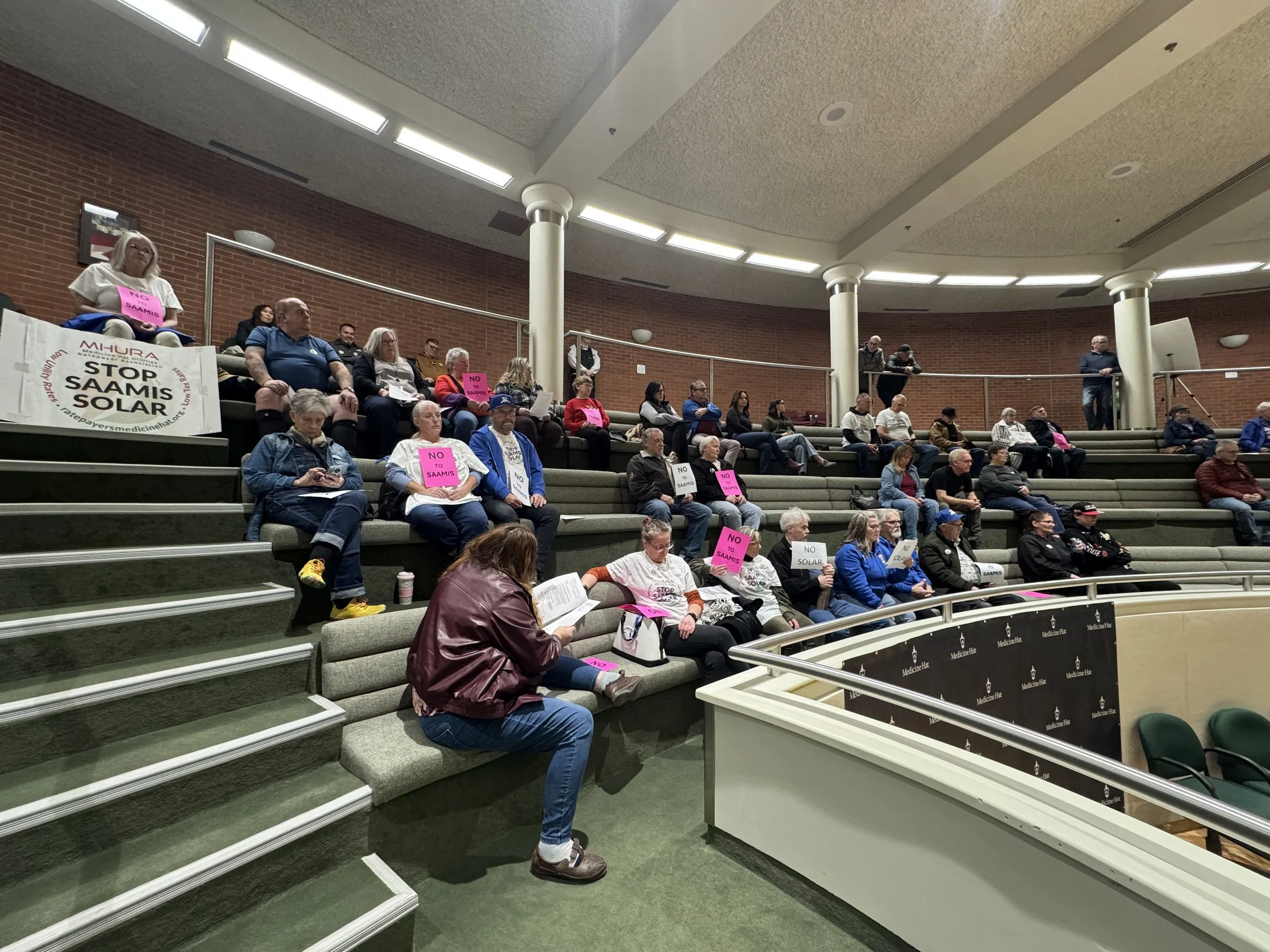 Opponents of the City Of Medicine Hat’s Saamis Solar project at Monday Feb. 2, 2026 council meeting.