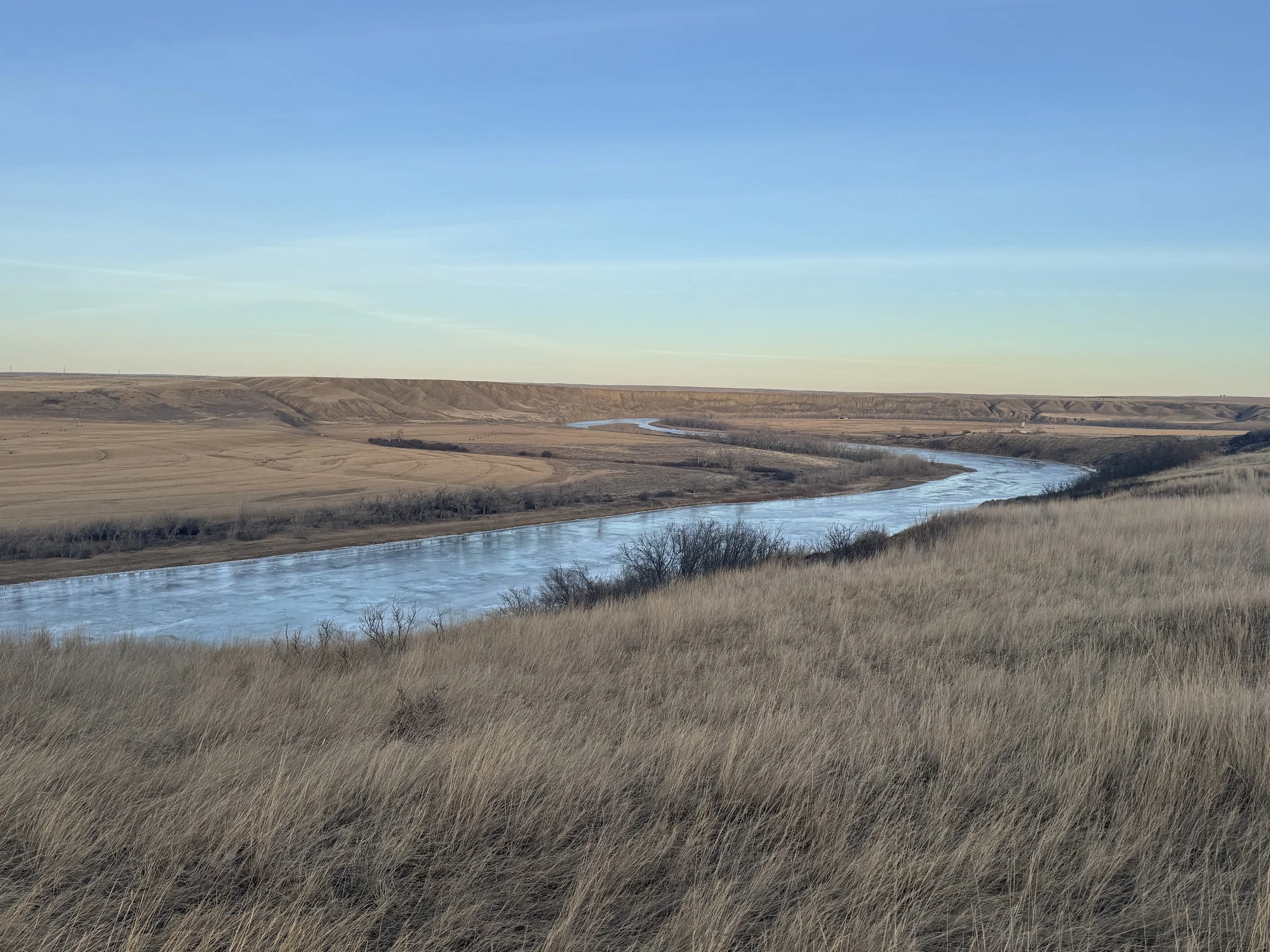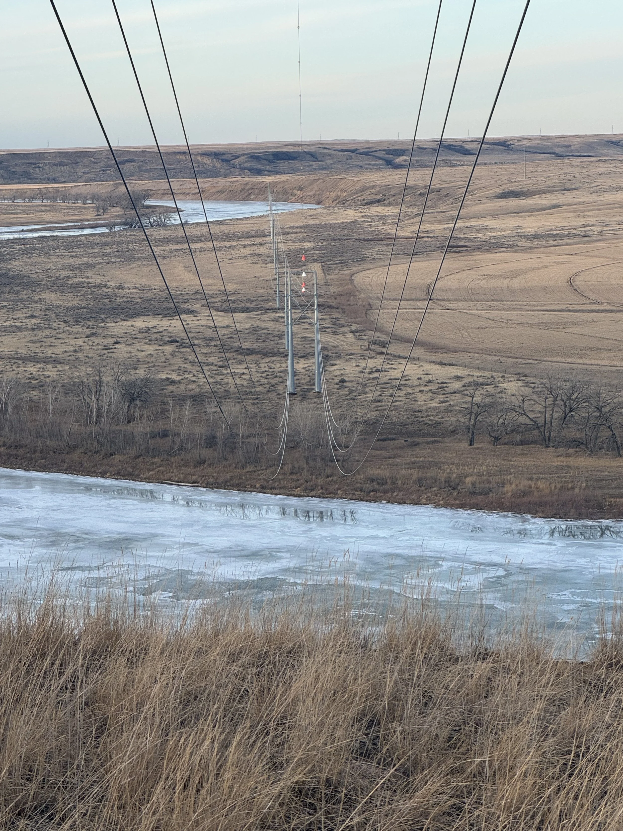 The South Saskatchewan River looking east from near the Division Avenue North transmission corridor, Tues. Feb. 2, 2026.