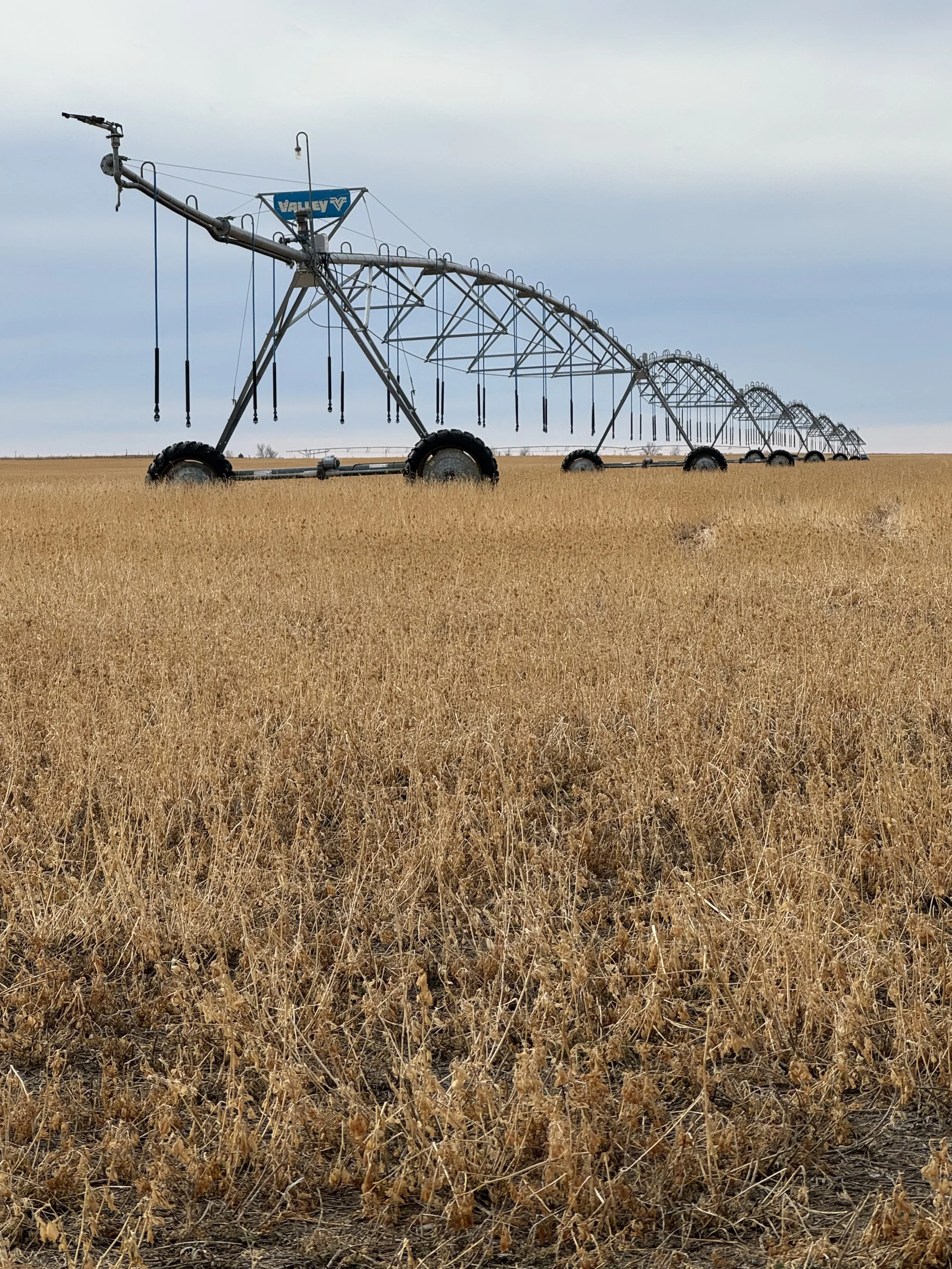 A irrigation pivot stands at the ready over a farmer’s field south of TWP. 120 on Sun. Feb. 8, 2026.