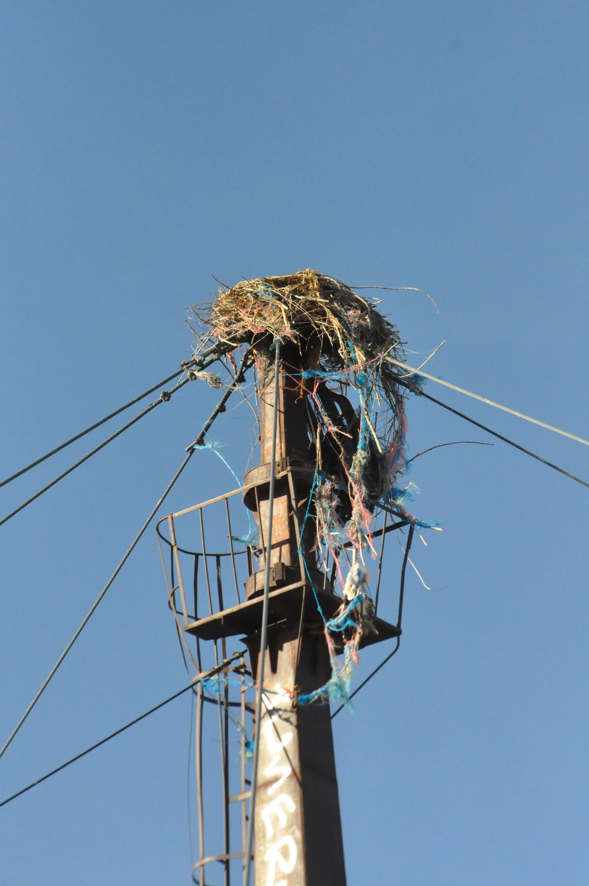 An empty nest stands a top of the tower of an old aerial ferry tower on Sat. Feb 7, 2026.